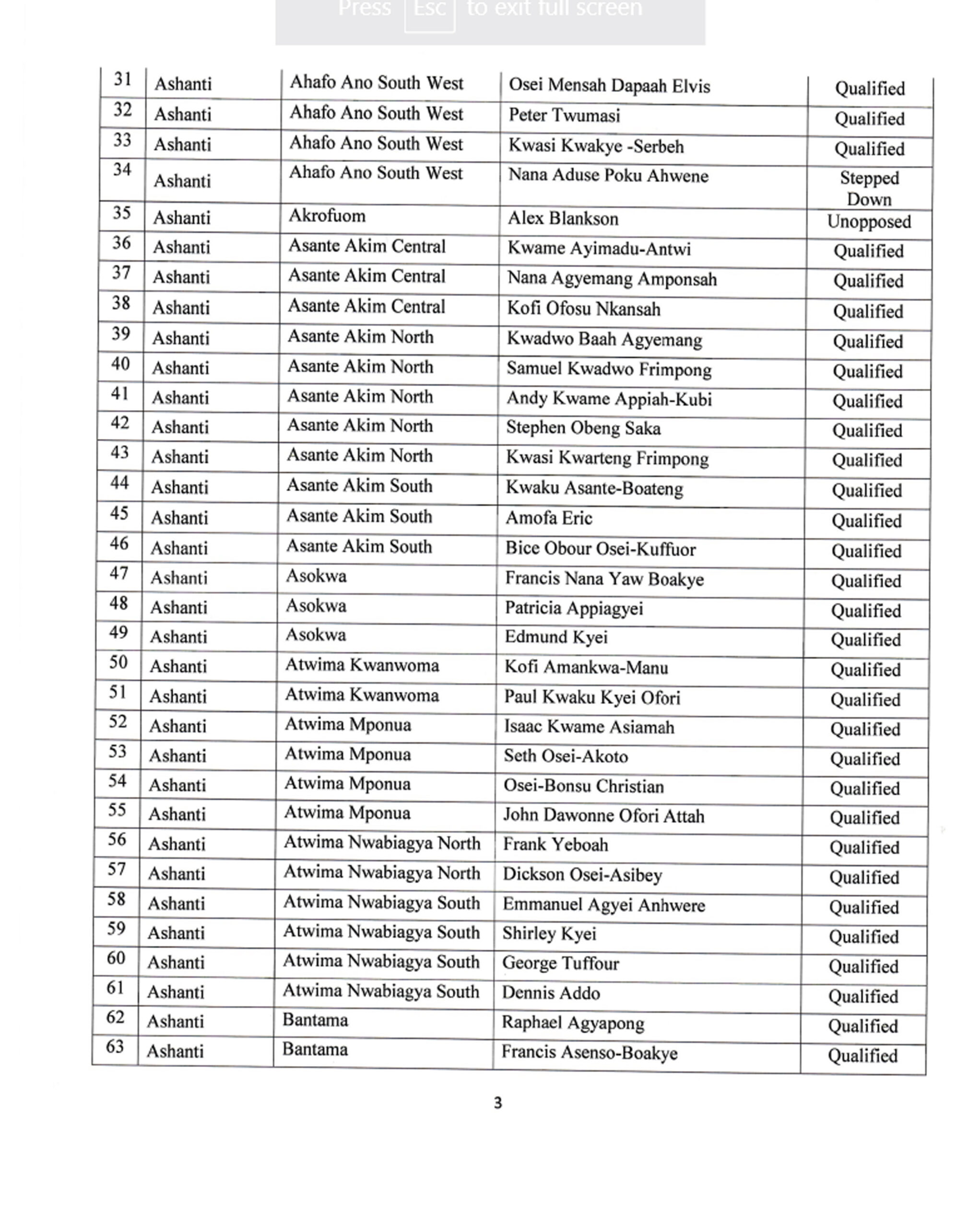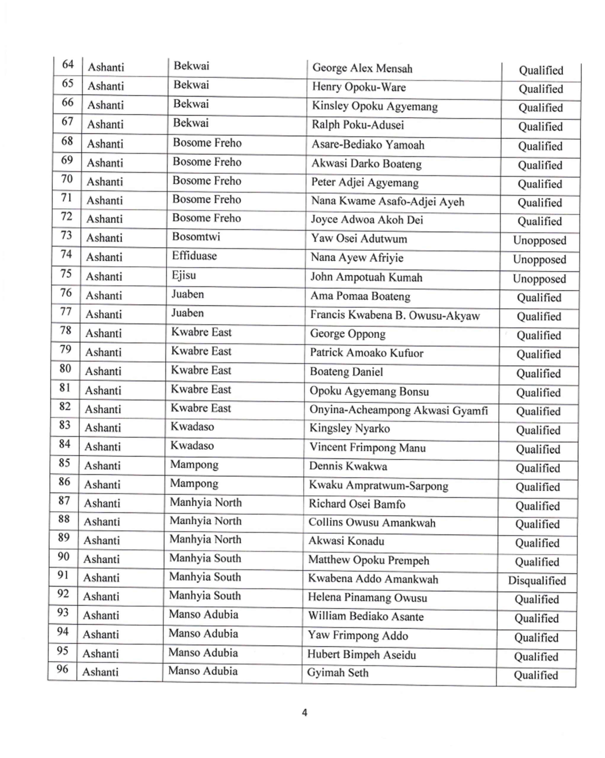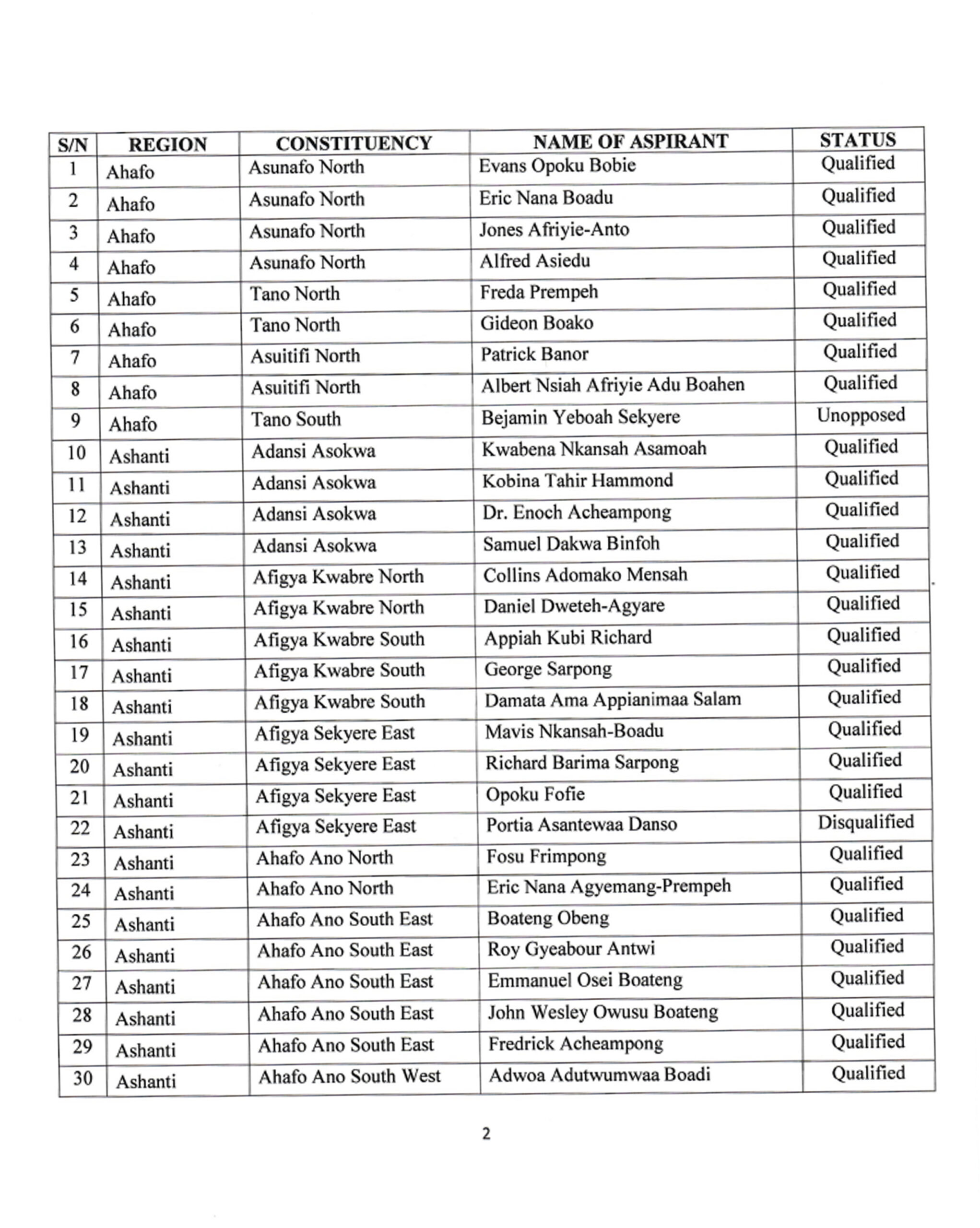 The governing New Patriotic Party(NPP) has released the names of all candidates contesting in the parliamentary primaries scheduled for Saturday, January 27, 2024, in all constituencies with sitting Members of Parliament(MPs).