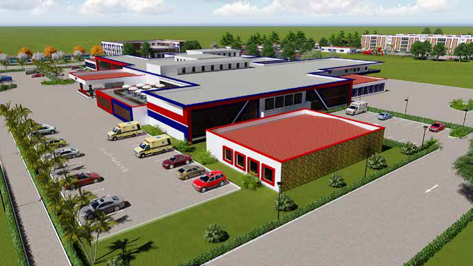 The 100-bed ward hospital would also have other social infrastructure, including a restaurant, crèche and playgrounds for kids, and staff apartments.