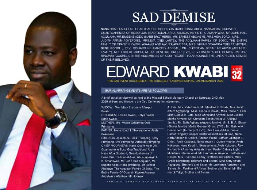 The late head of TV3’s Political Desk, Edward Kwabi Jnr., will be…