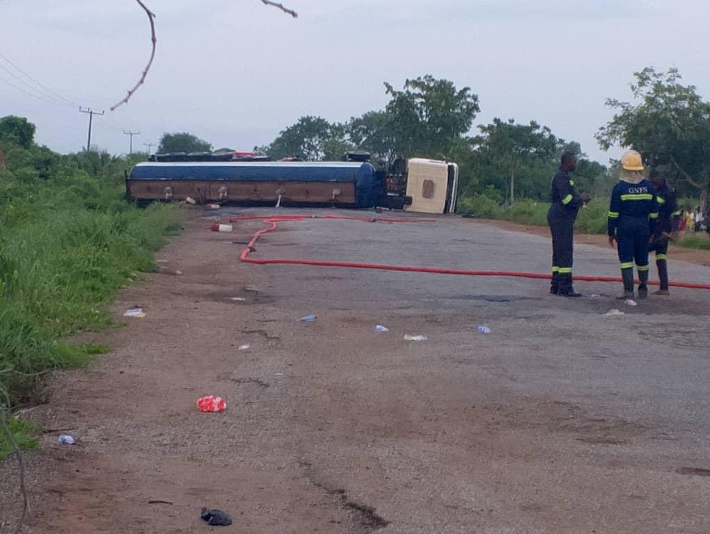 A fuel tanker from Burkina Faso has overturned on the Kintampo-Kumasi/Accra highway.…