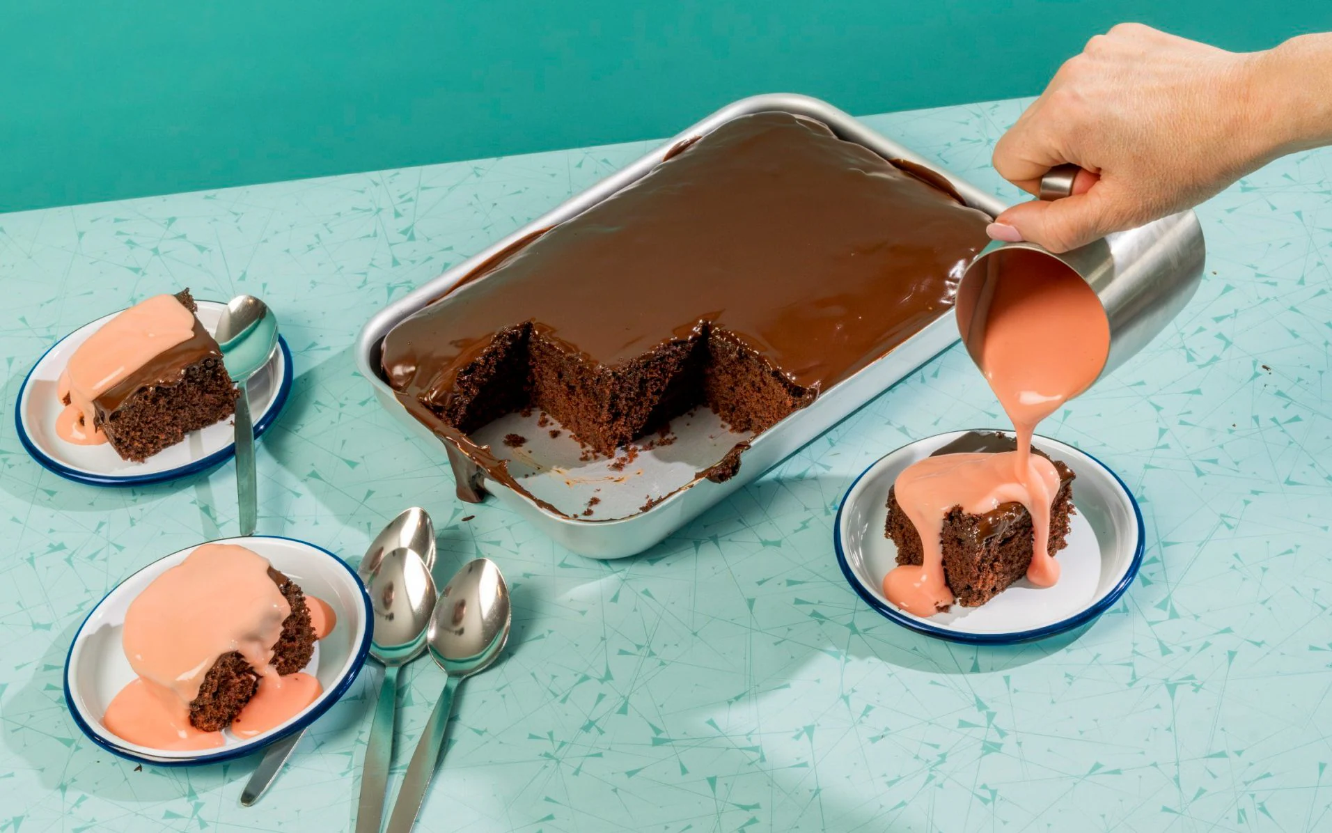 This classic chocolate sponge is topped with a layer of smooth chocolate…