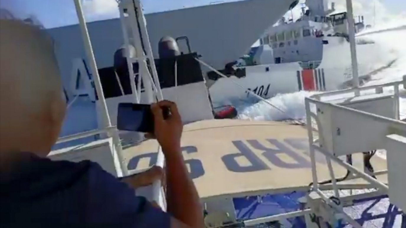 A Chinese warship ploughed into its own coast guard vessel on Monday…