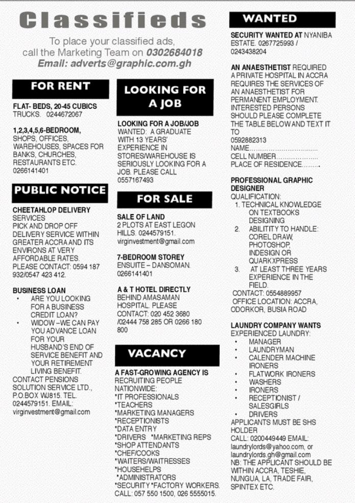 Prospective job seekers can find below the advertised jobs in the May 14, 2020 edition of Daily Graphic as published in the paper today.