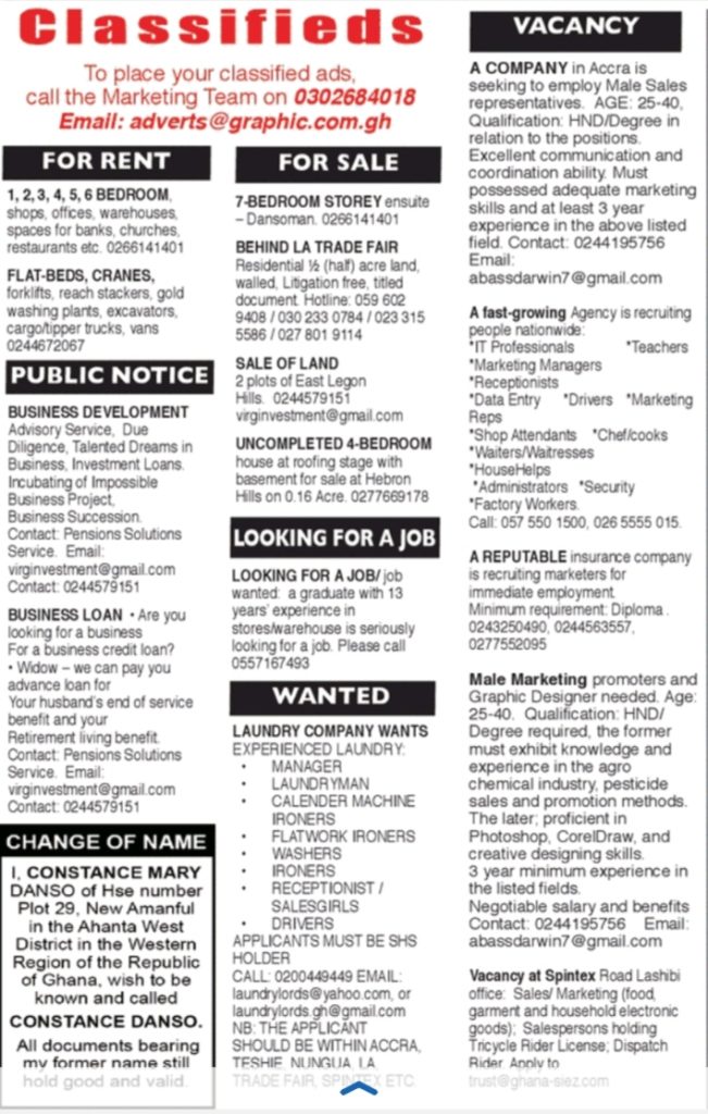 Prospective job seekers can find below the advertised jobs in the May 21, 2020 edition of Daily Graphic as published in the paper today.