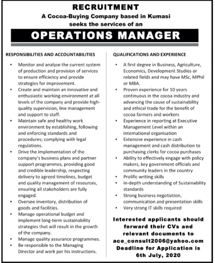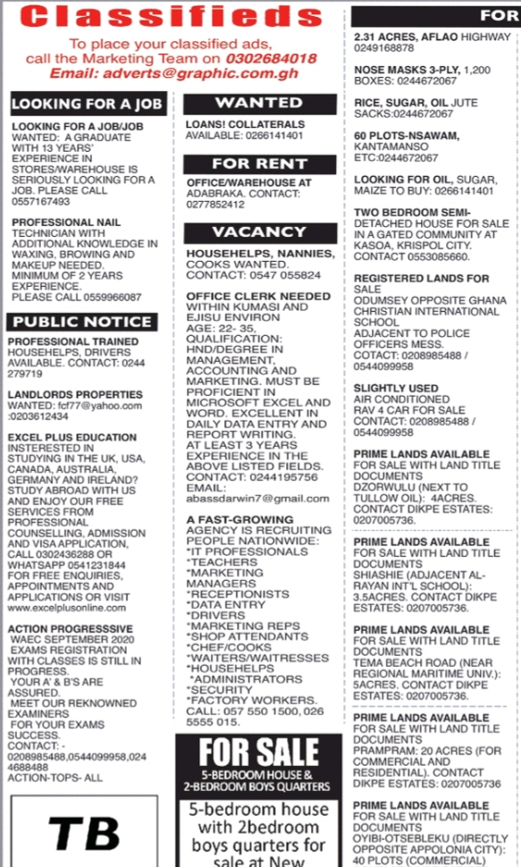 Prospective job seekers can find below the advertised jobs in the June 25, 2020 edition of Daily Graphic as published in the paper today.