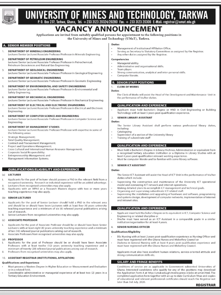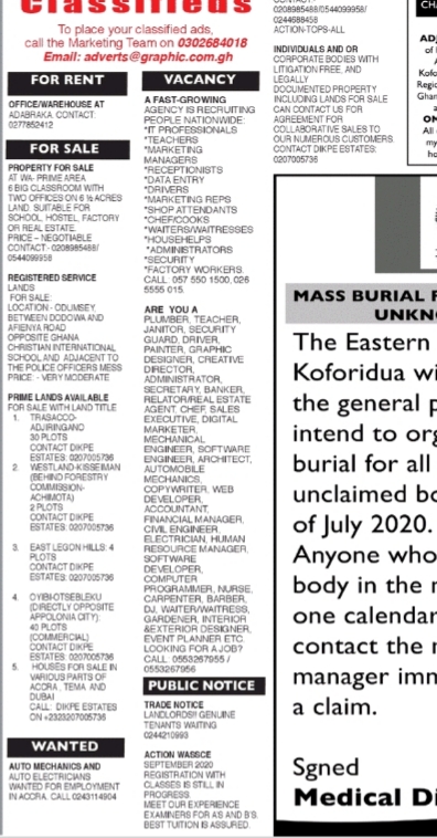 Prospective job seekers can find below the advertised jobs in the July 2, 2020 edition of Daily Graphic as published in the paper today.