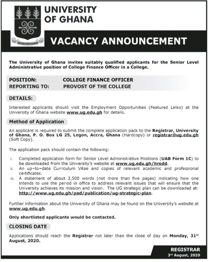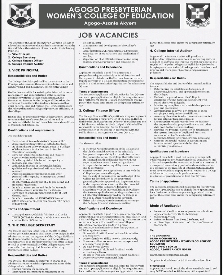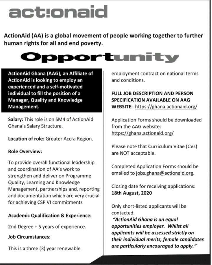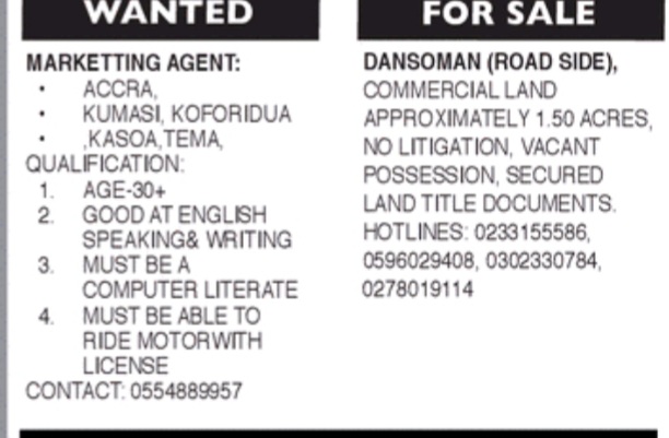 Prospective job seekers can find below the advertised jobs in the August 6, 2020 edition of Daily Graphic as published in the paper today.