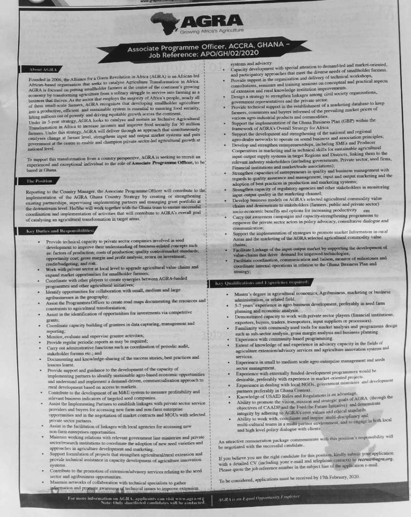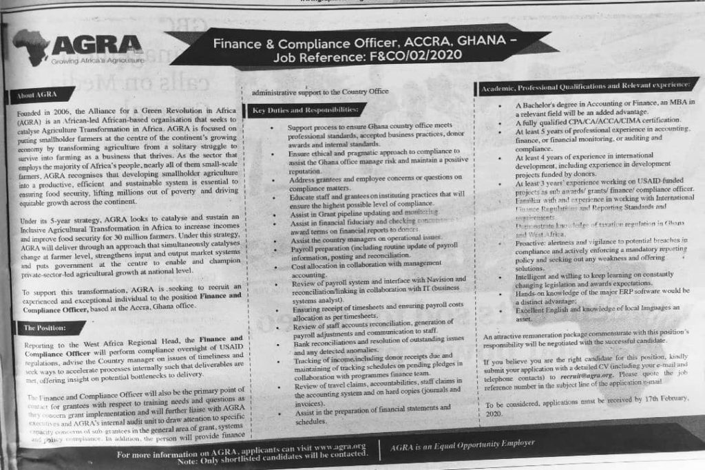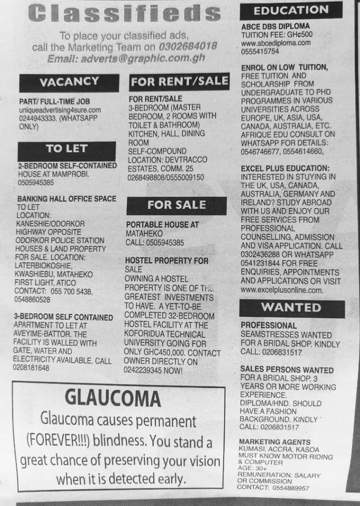 Prospective job seekers can find below the advertised jobs in the February 6, 2020 edition of Graphic newspaper as published in the paper today.