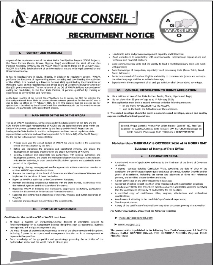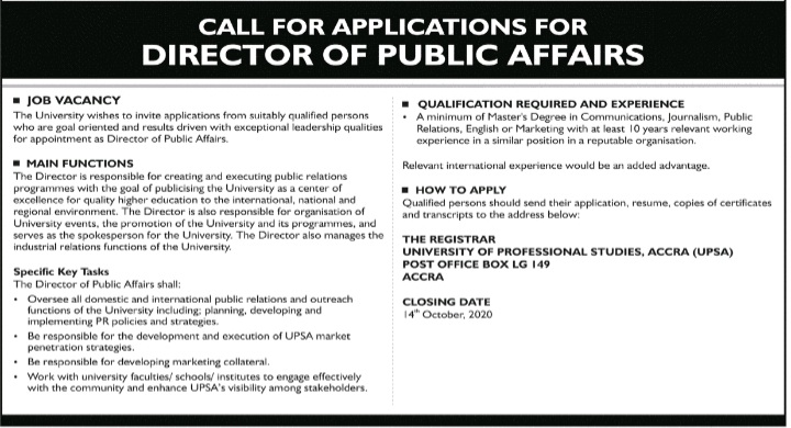 Prospective job seekers can find below the advertised job in the September 24, 2020 edition of Daily Graphic as published in the paper today.