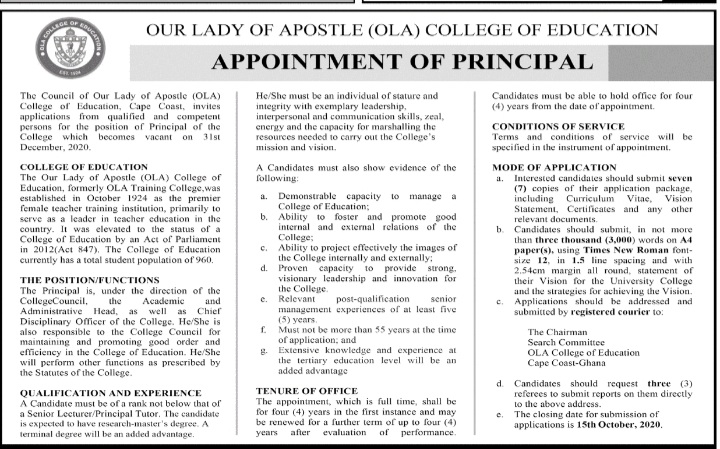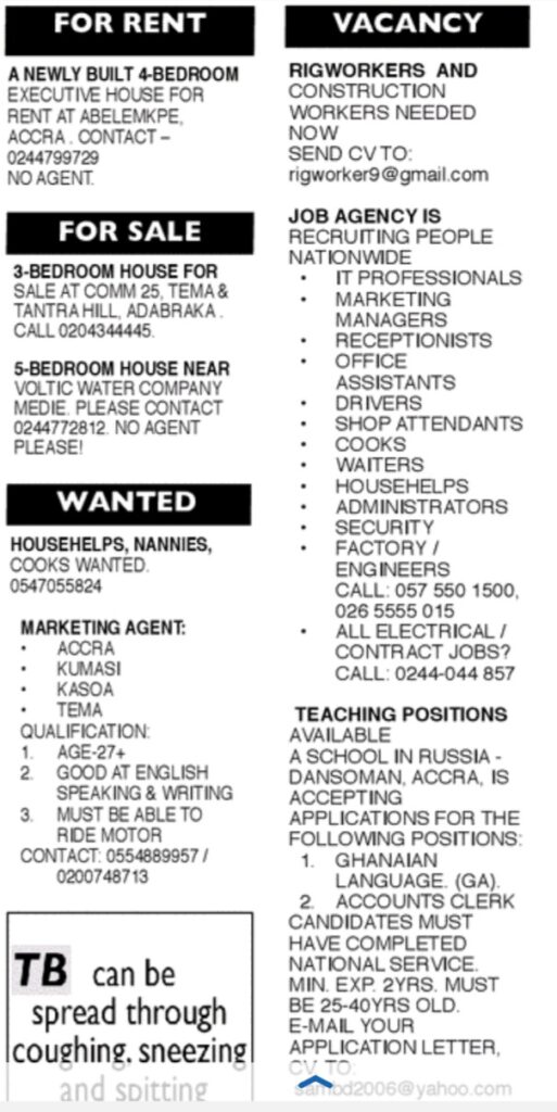 Prospective job seekers can find below the advertised job in the October 1, 2020 edition of Daily Graphic as published in the paper today.