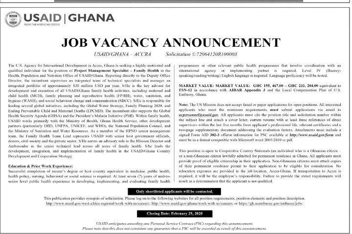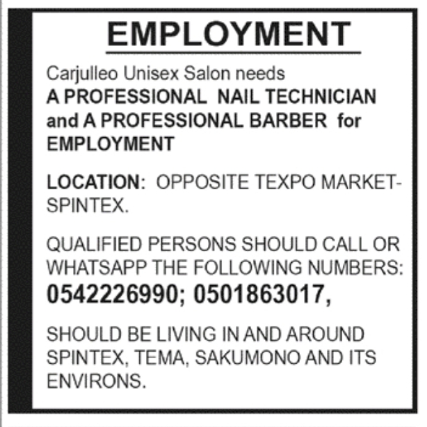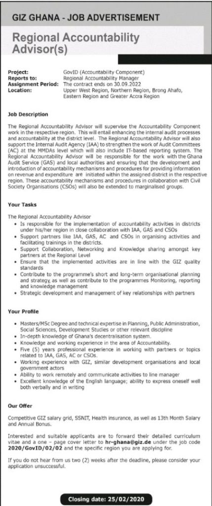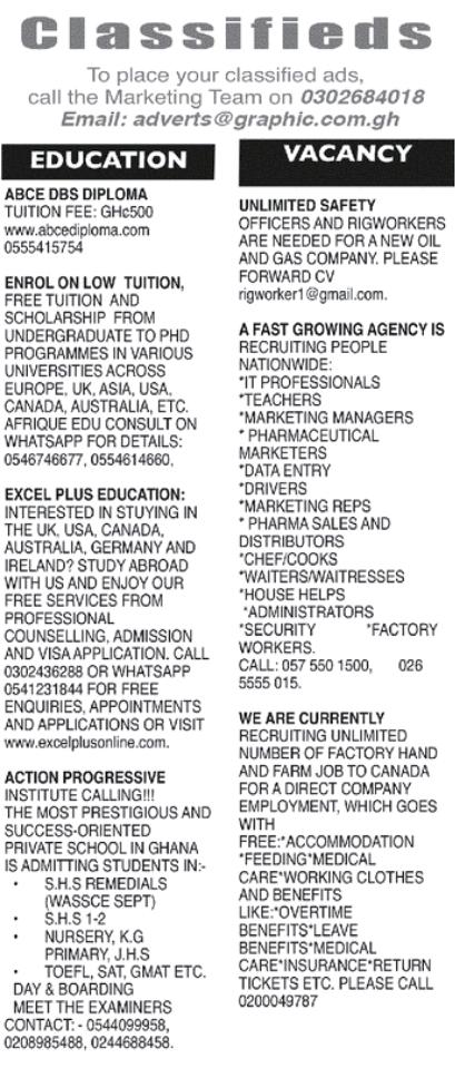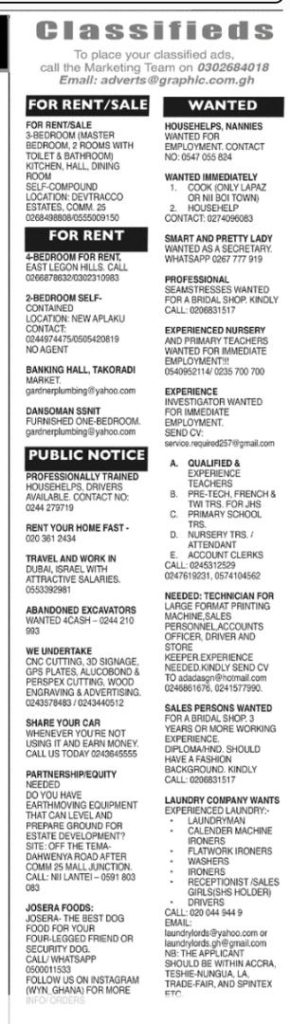 Prospective job seekers can find below the advertised jobs in the February 13, 2020 edition of Daily Graphic newspaper as published in the paper today.
