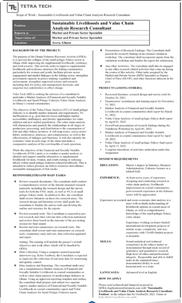Prospective job seekers can find below the advertised jobs in the October 7, 2021, edition of Daily Graphic as published in the paper today.