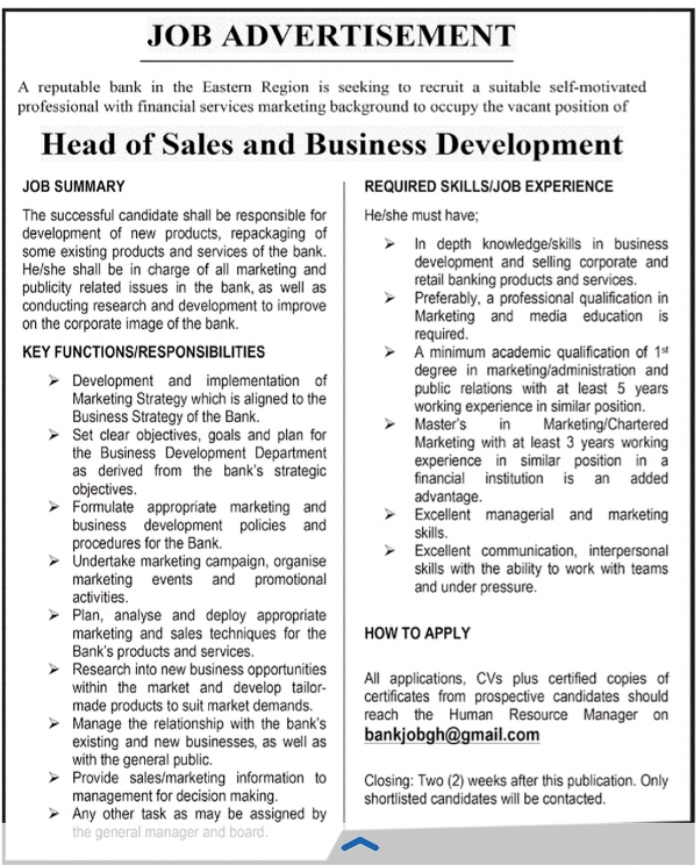 Prospective job seekers can find below the advertised jobs in the December 2, 2021, edition of Daily Graphic as published in the paper today.