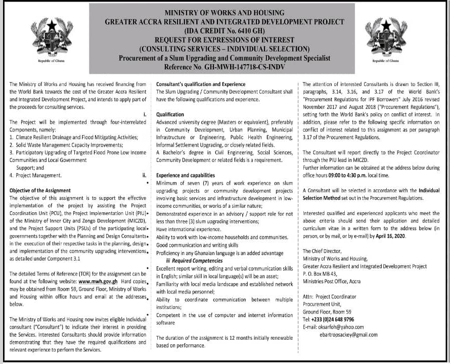 Prospective job seekers can find below the advertised jobs in the April 7, 2020 edition of Daily Graphic and Graphic Business as published in the paper today.
