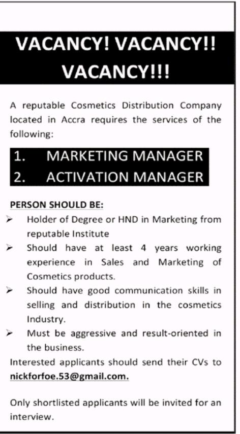 News Tuesday: Advertised jobs in newspapers today Story By: Gloria KAFUI Ahiable / info@theghanareport.com SHARE Prospective job seekers can find below the advertised jobs in the January 28, 2020 edition of Graphic newspaper as published in the paper today. TAGGED:Advertised jobsGhanaGhanaiansJobnewsnewspaperOnlineWeb Share This Article Facebook Whatsapp Whatsapp LinkedIn Leave a Comment Leave a Reply Cancel replyYour email address will not be published. Required fields are marked *Comment * Name * Email * Website