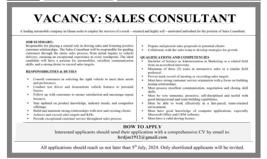 Prospective job seekers can find below the advertised jobs in the June 25, 2024, edition of Daily Graphic as published in the paper today.