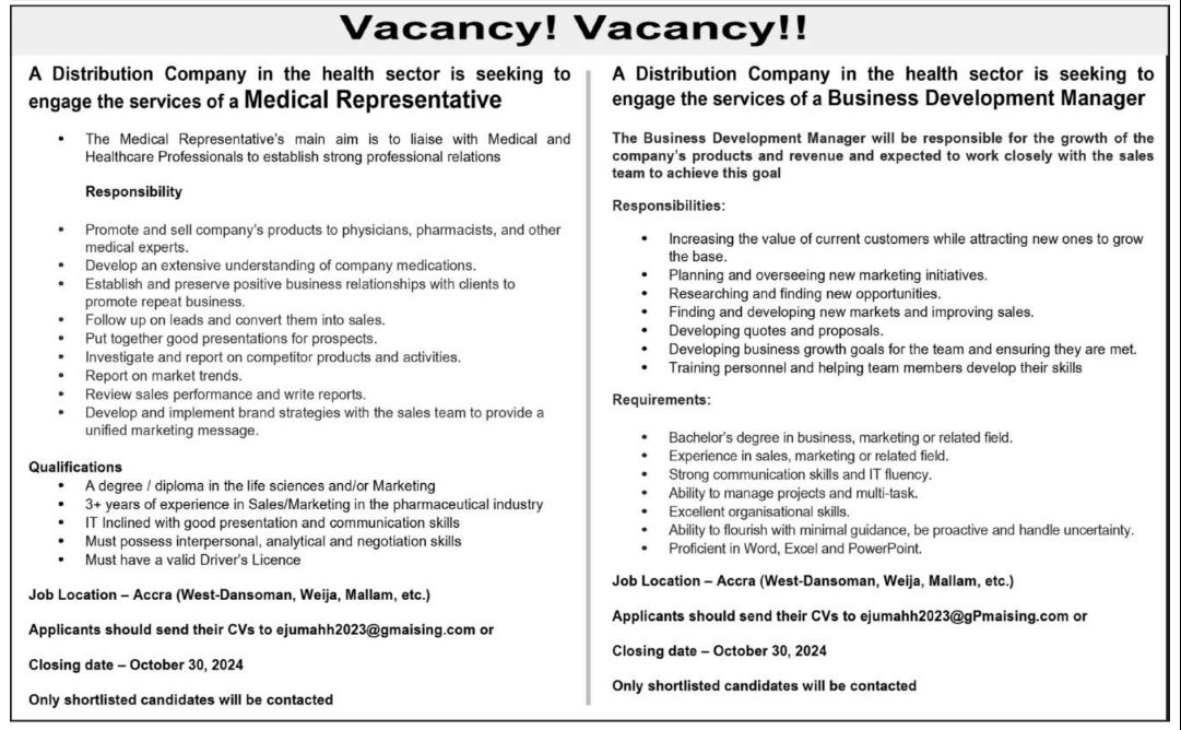 Prospective job seekers can find below the advertised jobs in the October 22, 2024, edition of Daily Graphic as published in the paper today.