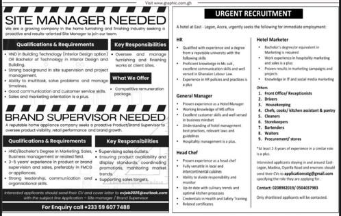 Prospective job seekers can find below the advertised jobs in the November 11, 2025, edition of the Daily Graphic as published in the paper today.
