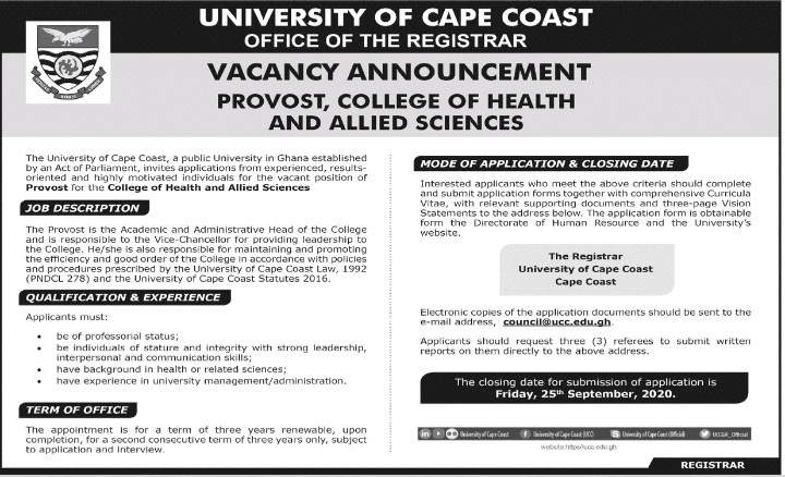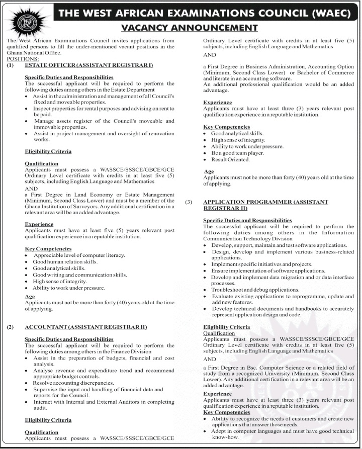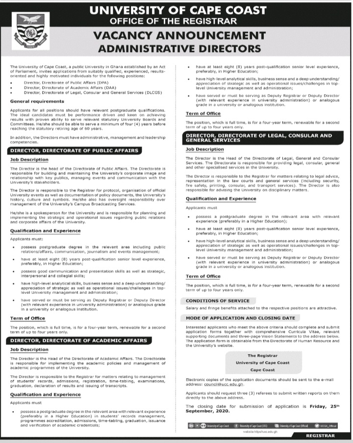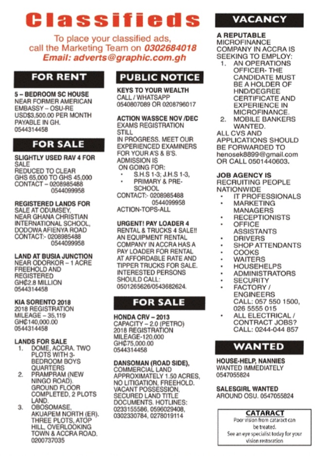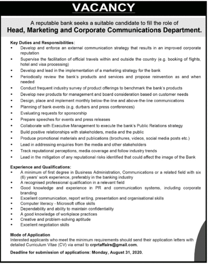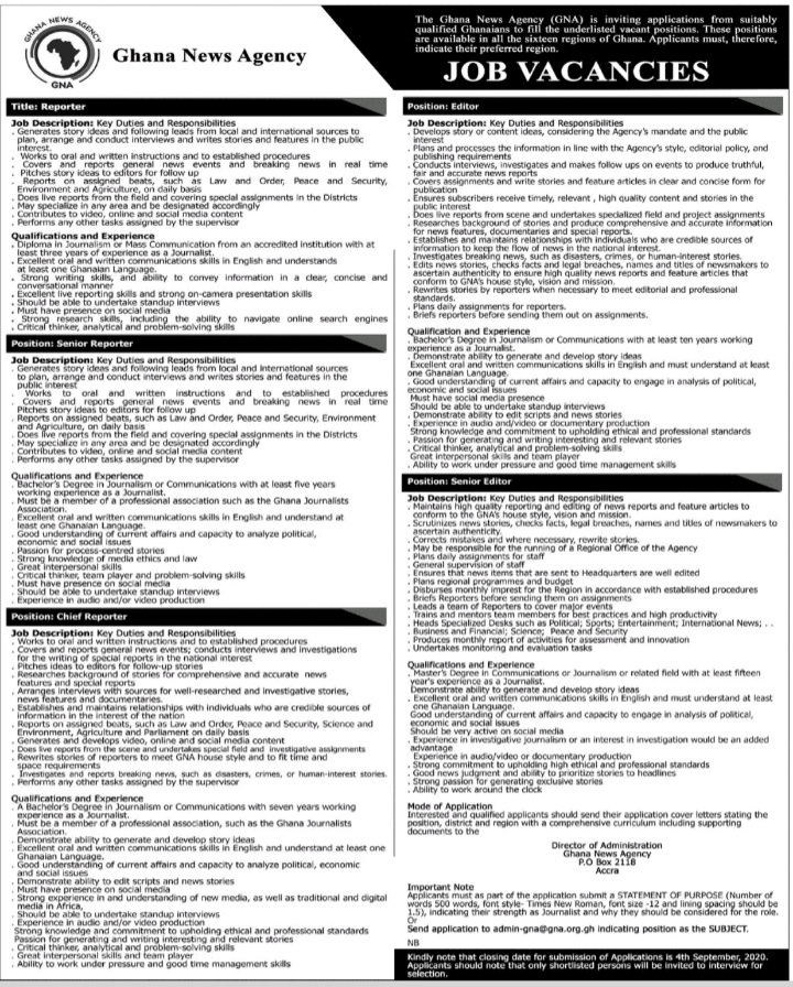Prospective job seekers can find below the advertised job in the August 25, 2020 edition of Daily Graphic as published in the paper today.
