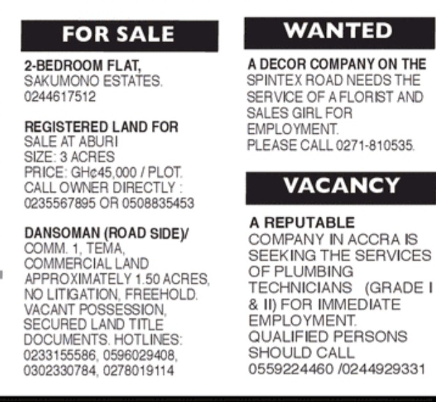 Prospective job seekers can find below the advertised job in the September 1, 2020 edition of Daily Graphic as published in the paper today.