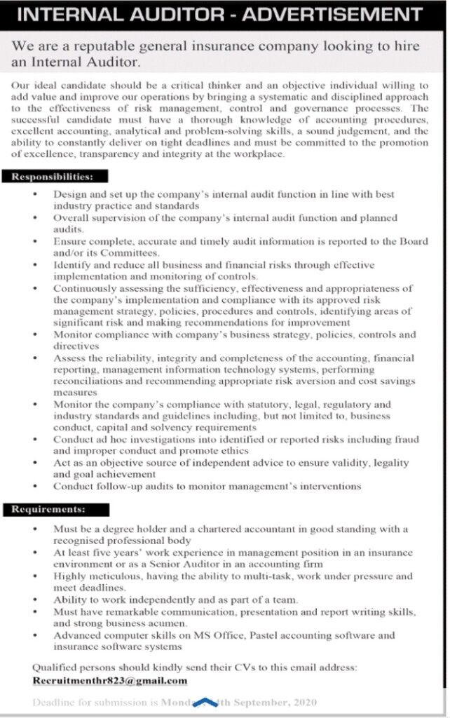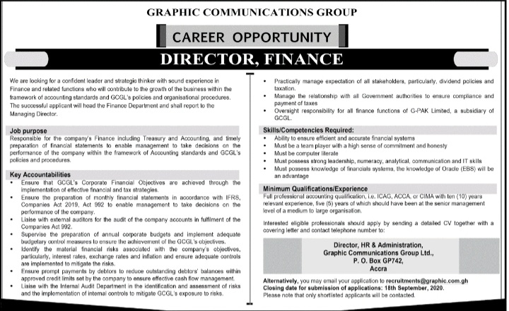 Prospective job seekers can find below the advertised job in the September 1, 2020 edition of Daily Graphic as published in the paper today.