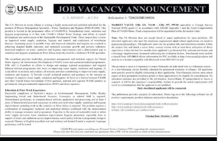 Prospective job seekers can find below the advertised job in the September 15, 2020 edition of Daily Graphic as published in the paper today.