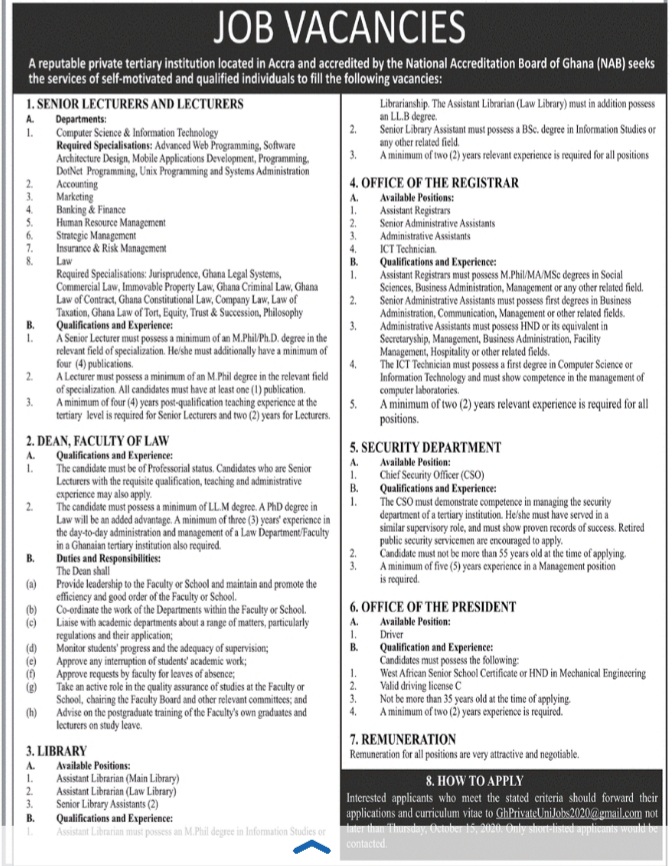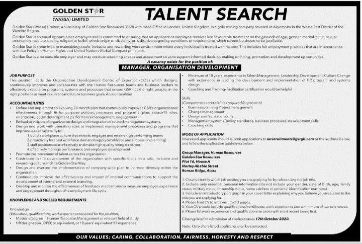 Prospective job seekers can find below the advertised job in the October 6, 2020 edition of Daily Graphic as published in the paper today.