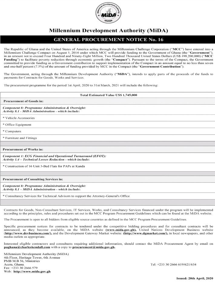 Prospective job seekers can find below the advertised jobs and bidding contracts in the April 22, 2020 edition of Daily Graphic as published in the paper today.