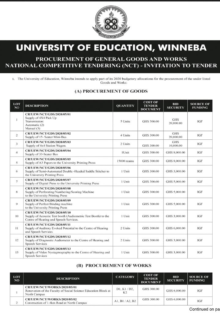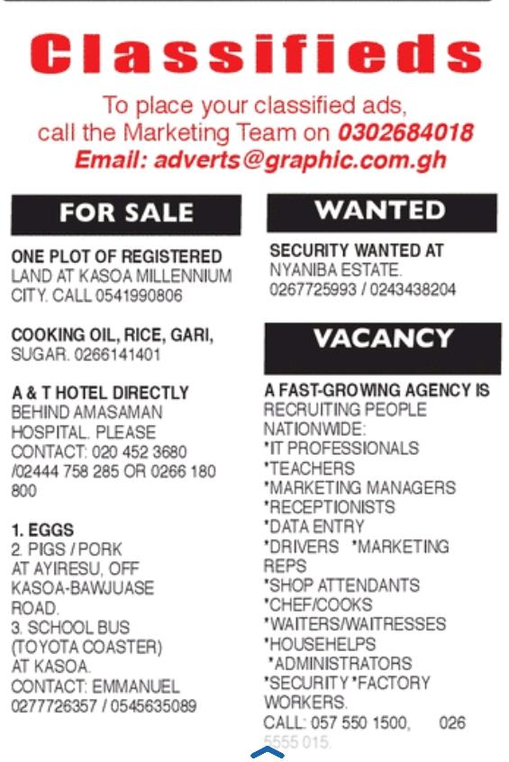 Prospective job seekers can find below the advertised jobs and bidding contracts in the May 6, 2020 edition of Daily Graphic and Graphic Business as published in the paper today.