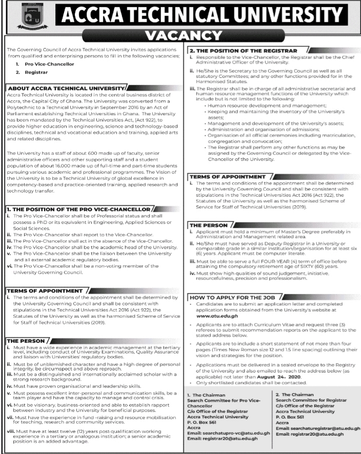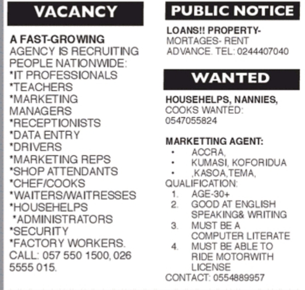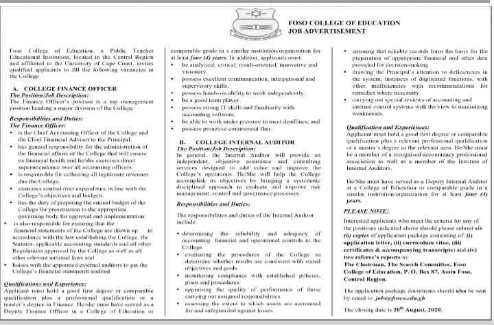 Prospective job seekers can find below the advertised jobs in the August 5, 2020 edition of Daily Graphic as published in the paper today.