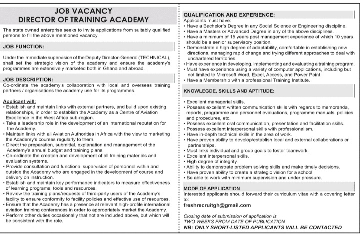 Prospective job seekers can find below the advertised job in the September 9, 2020 edition of Daily Graphic as published in the paper today.