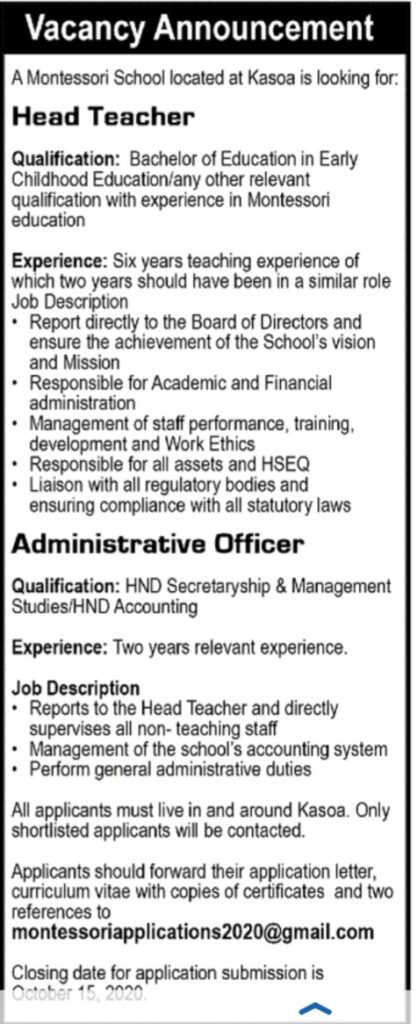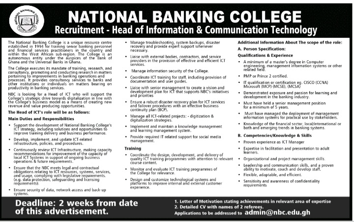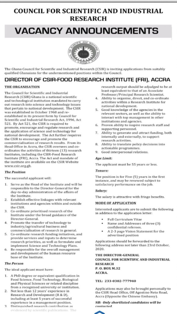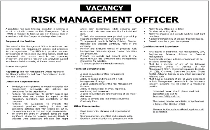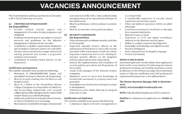 Prospective job seekers can find below the advertised job in the September 30, 2020 edition of Daily Graphic as published in the paper today.
