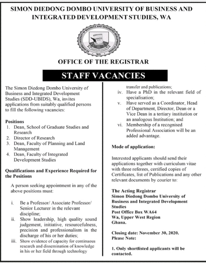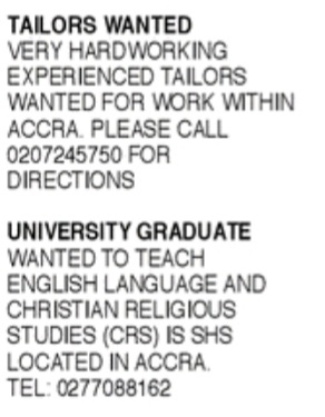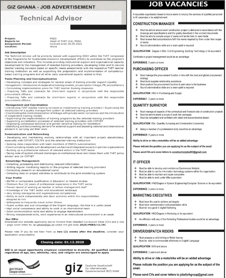 Prospective job seekers can find below the advertised jobs in the November 18, 2020 edition of Daily Graphic as published in the paper today.