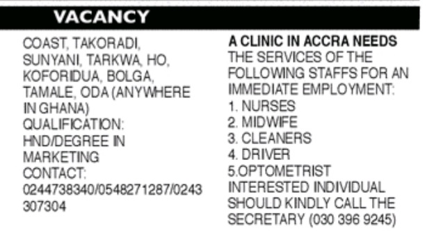 Prospective job seekers can find below the advertised jobs in the July 27, 2021, edition of Daily Graphic as published in the paper today.