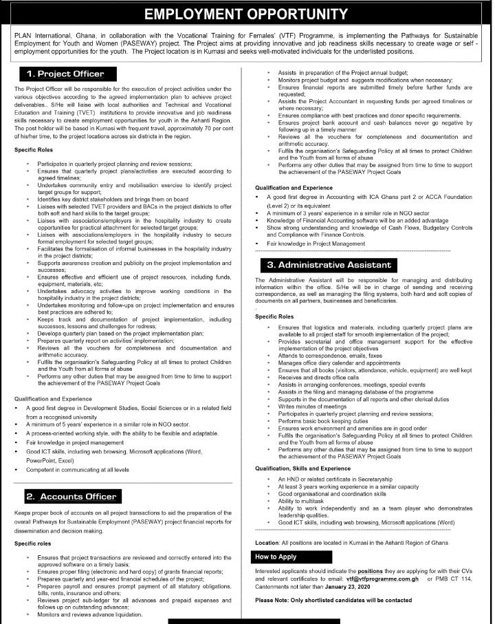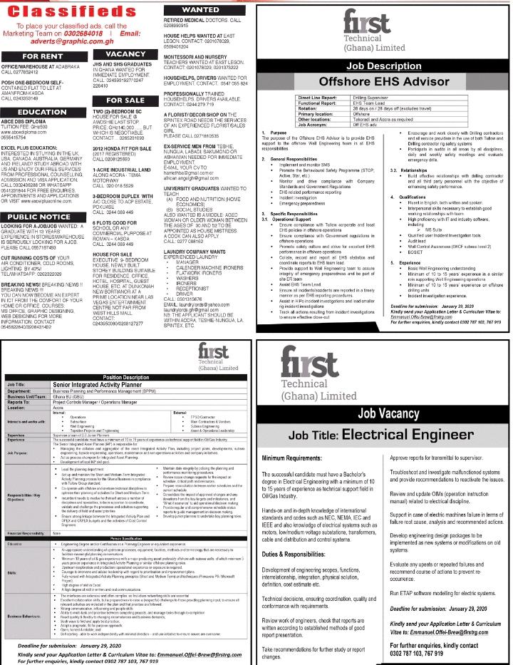 Prospective job seekers can find below the advertised jobs in the January 15, 2020 edition of Daily Graphic as published today in the paper.